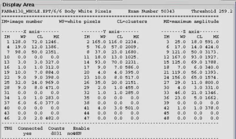 11. Искључите Кс,И и З Градиент Дриве Фибер Оптицс на ГП плочи, ЕПТ белу пикселну главу и скенирање тела. резултат је пролазан. То указује да је бели пиксел индукован градијентом. Видели смо да бели пиксел није присутан само на једној оси. Затим замените СГА ПС, ГП плочу, али проблем и даље постоји. Поново повежите Кс,И,З Градиент Дриве Фибер Оптицс.
