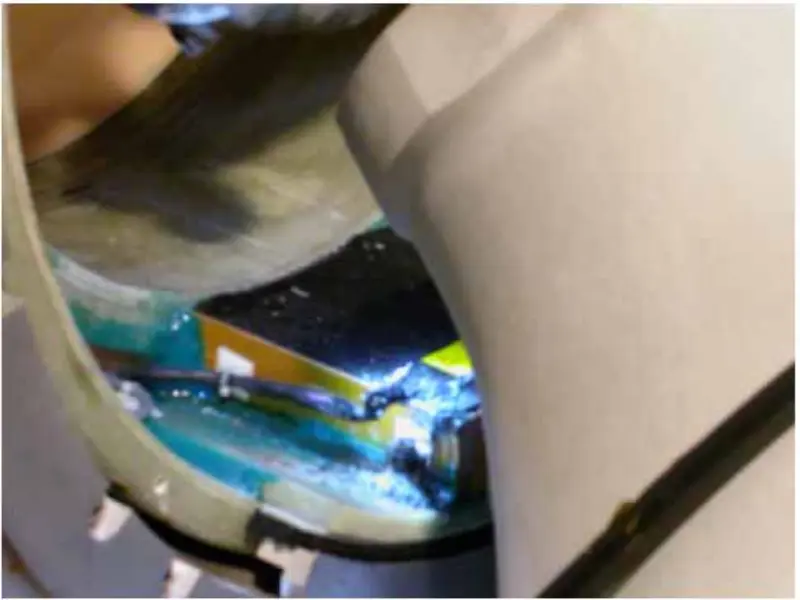 Из горе наведених радњи и анализе закључујемо да би проблем требао бити узрокован градијентом завојнице. Дакле, уклањамо предњи и задњи поклопац магнета, проверавамо и затегнемо завртње који се односе на градијентни калем. Након уклањања задњег поклопца магнета, открили смо да је кабл за подлошку високог реда прегорео у црни.